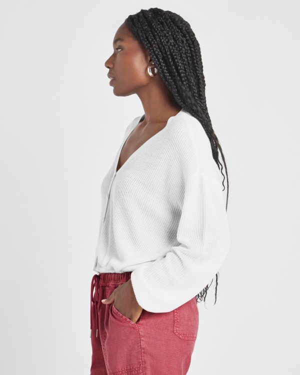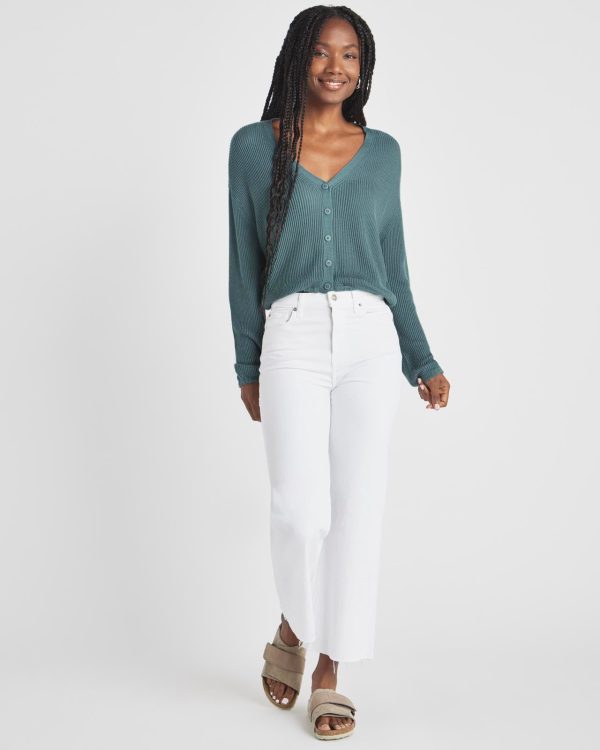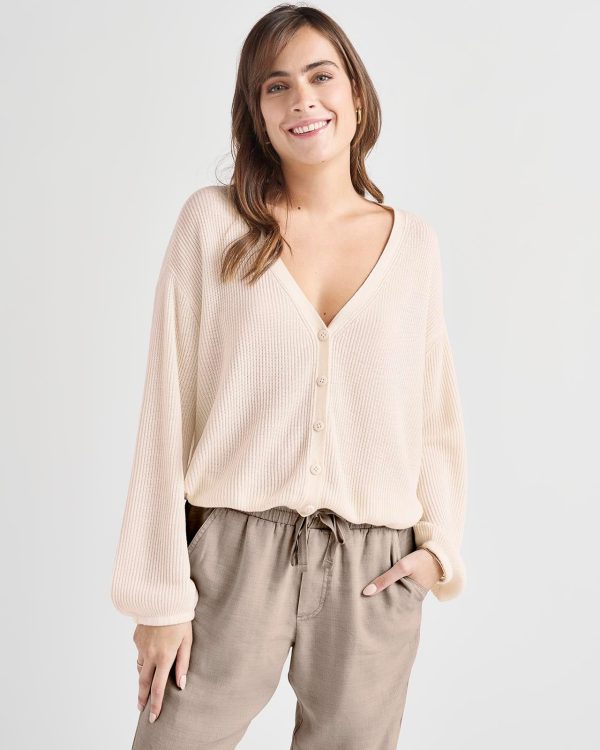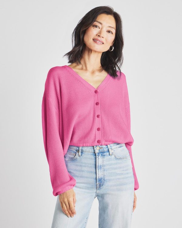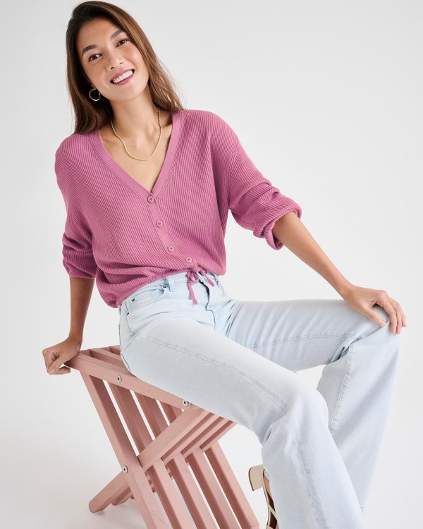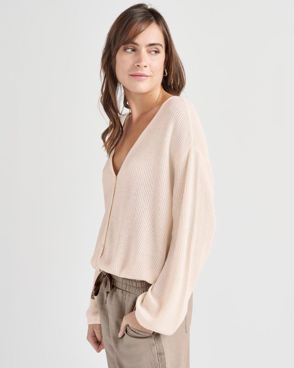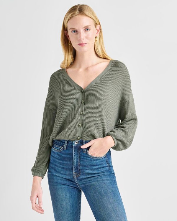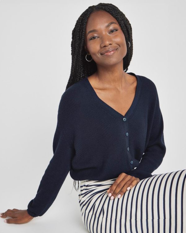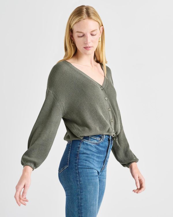 Softer than a cloud, our Bri Cardigan is made out of our favorite Cashblend material for all-day comfort. Plus, this style features elastic at the cuffs and hems and a drawstring at the waistband to create a bubble silhouette. Whether you wear it loose or tied, this cardigan looks great with dresses and jeans alike. Designed to hit above the waistband.