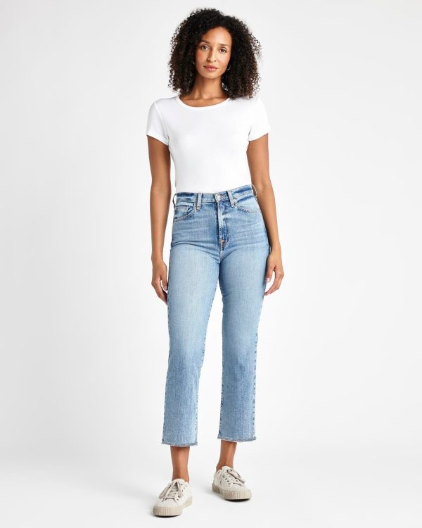 Our Cropped Stovepipe Jean feels like true-blue denim. This high waisted style features an easy fit and cropped hem, which makes them perfect for wearing with boots and loafers alike. Tuck in a tee or style with a sweater–these jeans go with everything.