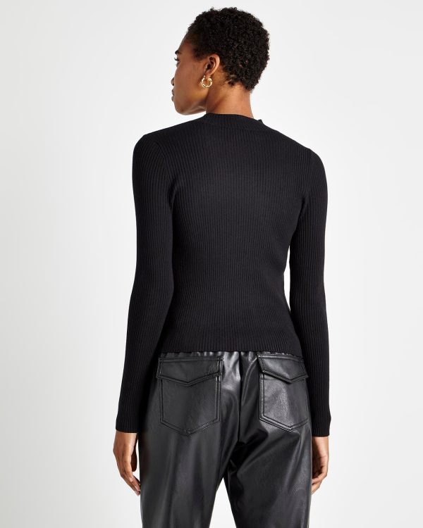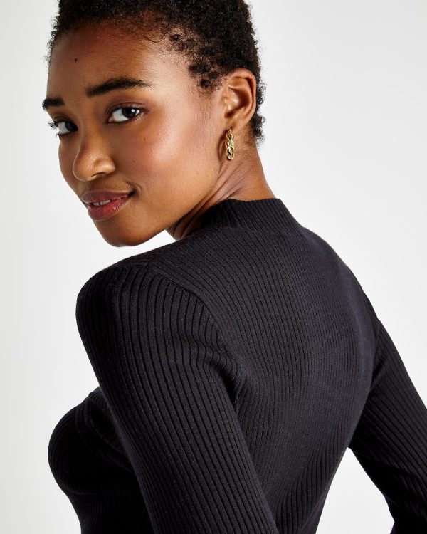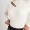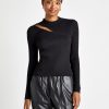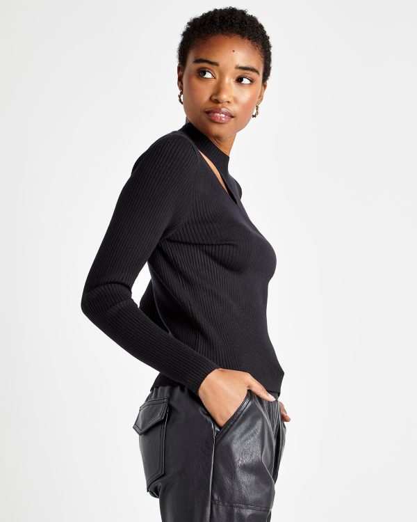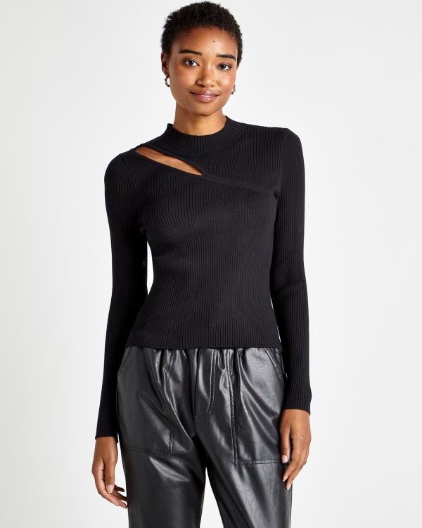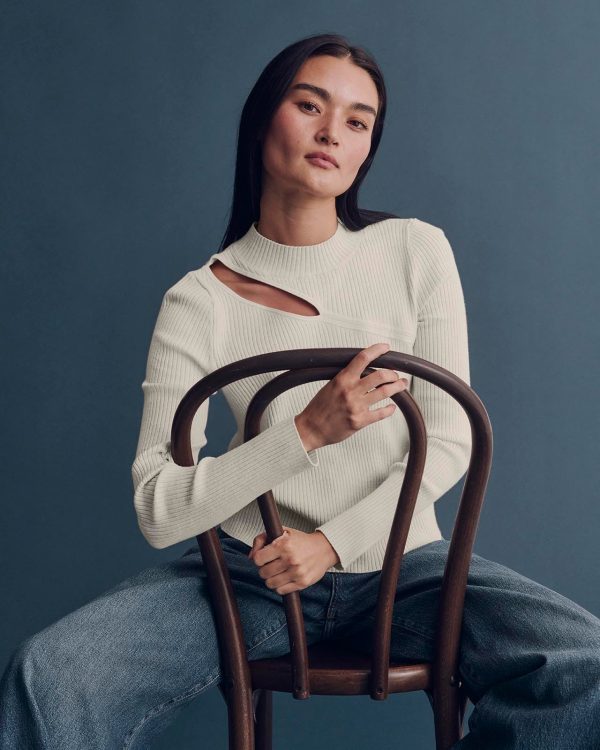 Refined with a hint of edge. The Valentina Cutout Sweater is made from a rib knit and features an asymmetrical slash cutout at the yoke (bonus: it’s bra strap-friendly.) Its slim fit body tucks into skirts and pants. Wear during office hours, wear for date night.