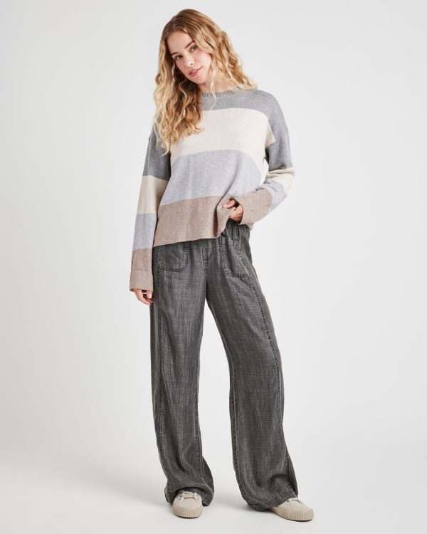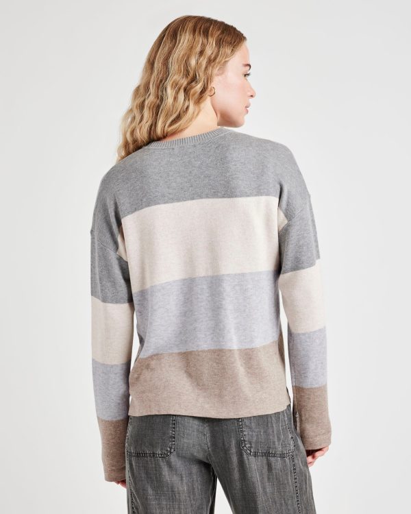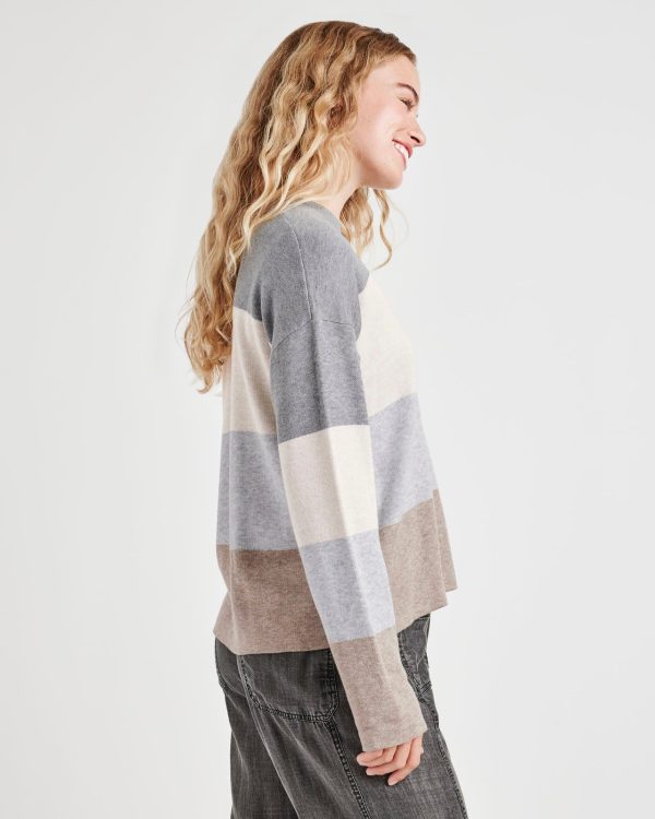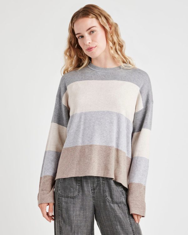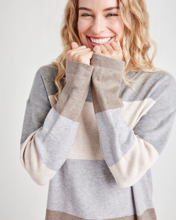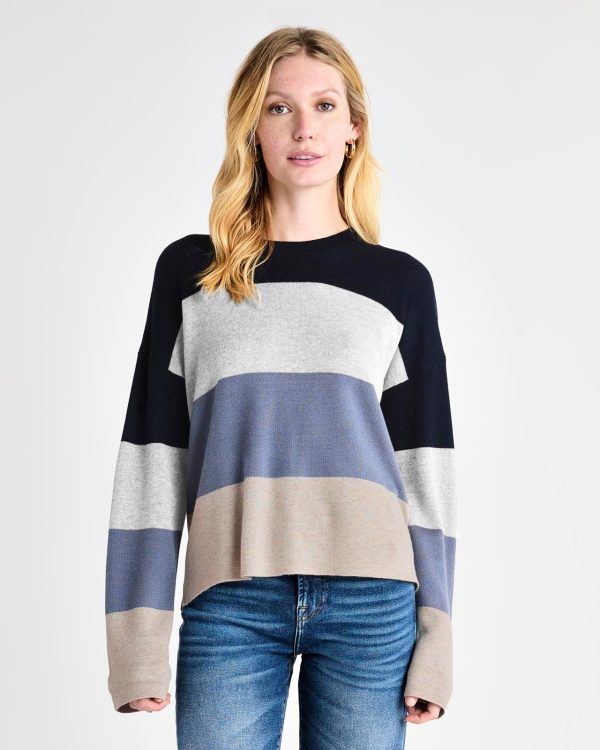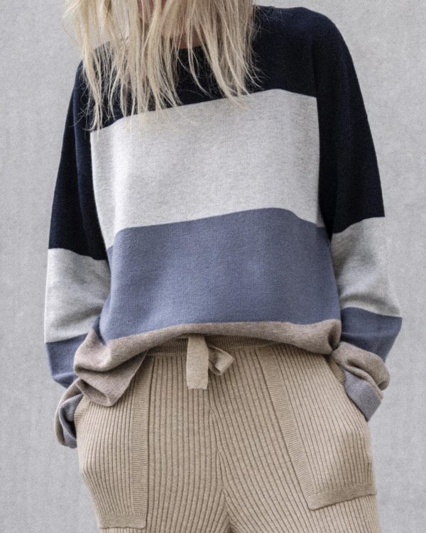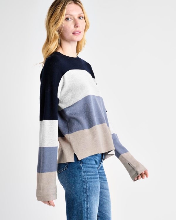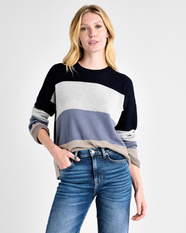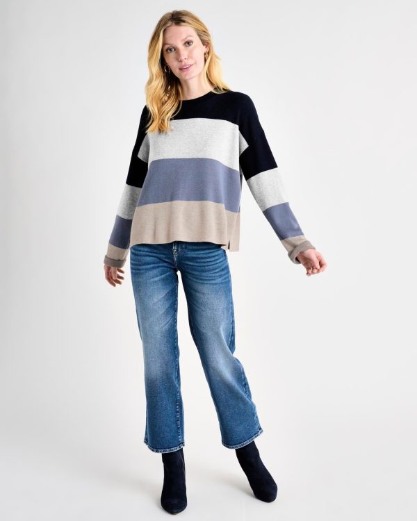 Our Georgie Oversized Stripe Sweater feels like being wrapped in the coziest blanket. Made from our Cashblend fabrication (a soft blend with a hint of cashmere), this crewneck sweater has an oversized fit with side slits and a blue-hued colorblock stripe. We love the rolled cuffs and the rib trim at the neck for added detail.